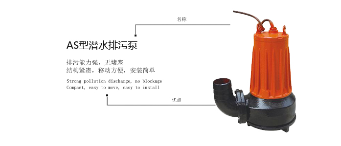 5、AS型西德式潛水排污泵結構緊湊,移動方便,安裝簡單,可減少工程造價,無需建造泵房。